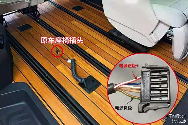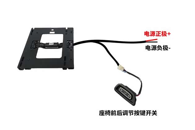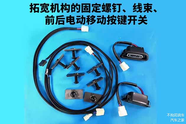 最后一点是关于拓宽机构接线的问题。其实非常简单,因为拓宽机构自带线束,我们只要将按键开关插上,再把电源线接上就可以了。拓宽机构的电源正负极两根线连接到哪里呢?对于高配座椅,原车座椅下面本来就有电线,只需要将拓宽机构的电源正负极两根线,并联到原车座椅插头的正负极上即可。对于低配座椅,则需要单独引出一根电源线。