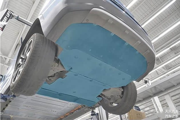 不论什么车型,底盘都是最易损坏的部位,不论是锈蚀还是磕碰,使用中都难以避免,将ES8用举升机升起,可以看到底盘平整度较高,这是因为ES8采用了EV专属设计车身,所以安装电池后底盘较为规整,不易受到磕碰。值得一提的是,蔚来ES8采用了造价较高的全铝车身,所以并没有像其他车型一样喷涂防腐材料。将护板拆下后,能看到副车架内十分整洁,电机/减速器部分布局也位于副车架上方,这样车辆出现托底,也不会造成电机的损失。