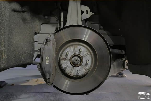 通过制动盘和制动片的磨损程度来看,蔚来ES8即使已经行驶超过十万公里,但前后制动盘均没有明显的沟壑,制动片也依然有一定的厚度。