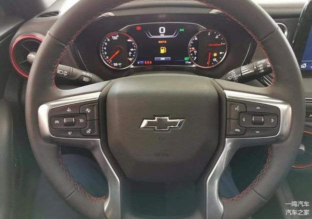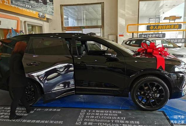 从到店的这款新车来看,亮点颇多。前脸部分,新车延续了家族化的设计风格,更加精致的细节处理彰显了雪佛兰的造车品质之高。一款大尺寸的进气格栅横置其中,占据了车头大部分面积,中间采用了波浪纹式样的中网,辨识度很高。一根粗壮的银色镀铬饰条位于中网上方,不仅拉长了车头的宽度,而且也给新车增添了质感。两侧LED大灯造型狭长,内部灯组线条平直,点亮后视觉冲击力很强。美系车的肌肉元素也在引擎盖上隆起的筋线处体现出来。前脸下方贯穿式进气口有角度倾斜,配合两侧犀利的雾灯,整体显得攻击性十足。另外,新车分为普通版、RS运动版以及Redline版,前脸造型各不相同。