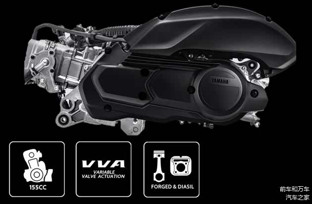 在动力方面,NMAX155 采用搭载自家蓝芯技术的单杠水冷发动机,该发动机还有一个比较特别的VVA可变气门技术,在汽车发动机里很普遍,摩托车比较少,最大功率11.3KW.