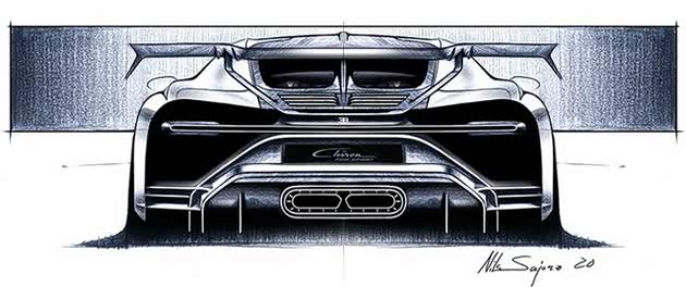 Chiron Super Sport 300+车型的尾部很长,这样的设计在1960-1970年的超级跑车上非常常见,看上去就像一架飞机,工程师们将车顶向下延伸,而后包围以及扩散器向上延伸,最终该车尾部被拉长了25厘米。这样的设计是为了让空气尽可能长时间的作用在车身上,产生足够的下压力。