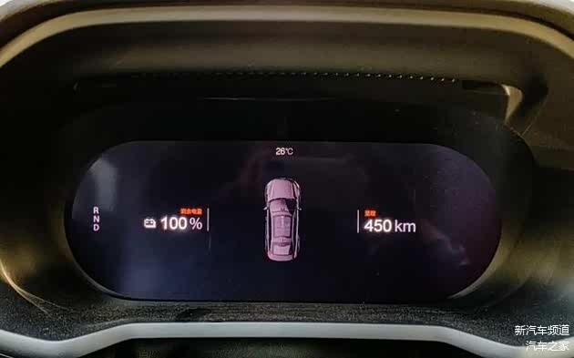 开始前我们对Polestar 2进行充电,充满自动跳枪时表显续航里程为450km,与官方标定的续航里程一致,电量显示为100%。