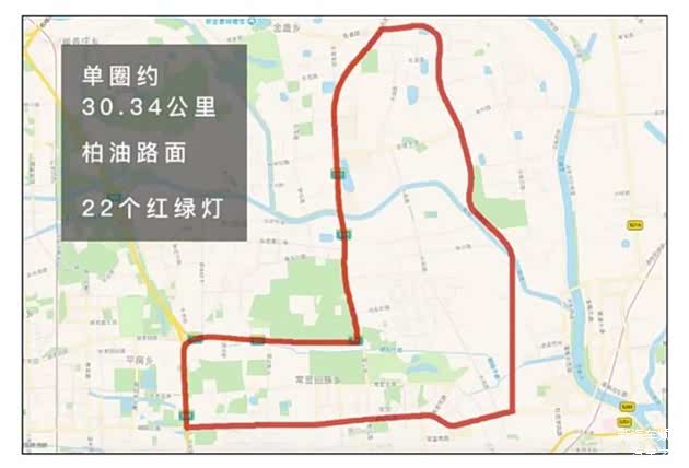 测试路线为北京东五环外圈附近,单圈约30km,柏油路面,共有22个红绿灯,全路段包含城区拥堵、城区高速、城区快速三种不同的路况,其中高速路段最高限速为100km/h,基本模拟了日常城市用车工况。
