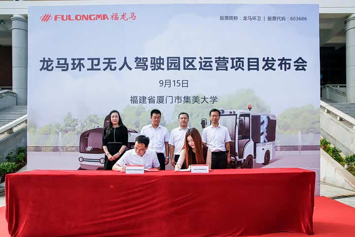 环卫企业福建龙马环卫装备股份有限公司与无人驾驶公司上海于万科技有限公司(以下简称于万智驾),在厦门集美大学召开无人驾驶园区运营项目发布会,会上双方签署了战略合作协议。此次投放在厦门集美大学的两款于万智驾无人环卫车分别是中型无人驾驶清扫车,和小型的无人驾驶清扫车。