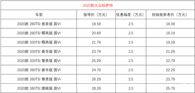 近日,在上海地区购买2020款大众帕萨特可享最高现金优惠2.5万元。官方指导价:18.59-28.29万元。
