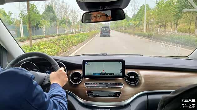 老规矩,一下火车一辆英气逼人的V级车出现在眼前,前脸双幅饰条的镀铬格栅中镶嵌着一个硕大的三叉星辉,格外显眼,那种尊贵感由然而生。不等工作人员本着一颗体验的心的笔者自己拉开了副驾的大门坐了上去,等车开了出去才意识到最佳体验在第二排,副驾可是小助理坐的呢,随即调换到第二排。