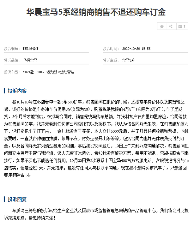 2021款宝马5系,至于车子的品质究竟如何,还需要有待一步的考验,但是,抛开品质问题不说,临时加价,不退还订金,这样的服务态度,真的让人不禁汗颜。这不就是典型的要你交钱的时候,把你当“爷”一样伺候着,有问题的时候,就干脆不管了吗?不愧是华晨宝马。所以,网友们要买2021款宝马5系的一定要注意,多看合同多了解,不要迫不及待地去签订合同,以免被“坑”。