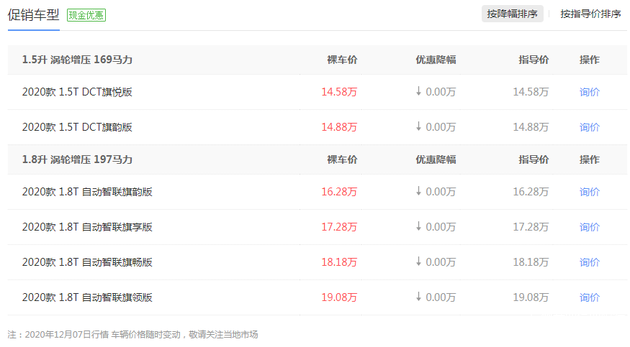 引自汽车之家图库配置 :动力方面,2020款 1.8T 自动智联旗享版搭载了一套48V轻混系统,配备了1.8T四缸涡轮增压最大功率197马力,峰值扭矩320牛·米,匹配手自一体变速箱(AT),配置方面,这款车搭载了车道偏离预警系统、主动刹车/主动安全系统等安全配置,更好地保障了驾乘人员的安全。而辅助配置方面,还搭载了前/后驻车雷达、自适应远近光、自动头灯等,有效减轻了驾驶人员的操作强度。除此以外,这款车还搭载了感应后备厢、主/副驾驶座电动调节等舒适配置,带给车内人员更加享受的驾乘体验。