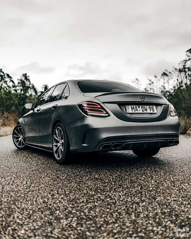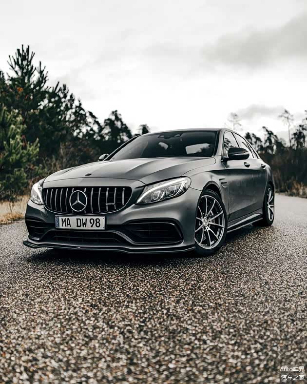 奔驰AMG C63实车,外观采用了哑光漆面涂装硬朗又运动,前脸采用了家族式的造型设计犀利又运动,扁平的前脸大灯非常有神,侧身采用了非常硬朗的腰线设计很有力量感,车门处理也是非常精致,轮毂造型非常运动,车尾造型设计也是非常时尚性感。