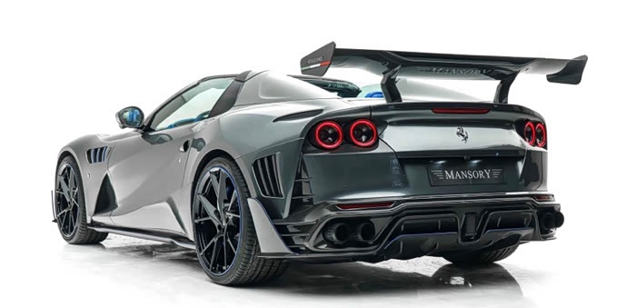 来自巴伐利亚的改装专家Mansory,为这款可伸缩硬顶超级跑车开发了一组相当狂野的碳纤维车身套件,其尾部是一个庞大的尾翼,仿佛把我们带回了童年玩《极品飞车:地下狂飙》的回忆。在经典的Mansory改装风格中,这台812 GTS的古怪改头换面可能会被当作是另类,其中包含大量的空气动力学附件。