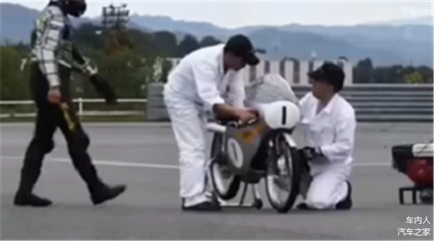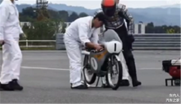 这样一台号称是最强悍的50CC摩托车亮相,马力仅16匹,还是风冷,却可爆发出22500转,按照升功率来算的话,相当于330匹的马力,一般摩托车可难以达到这样的转速。