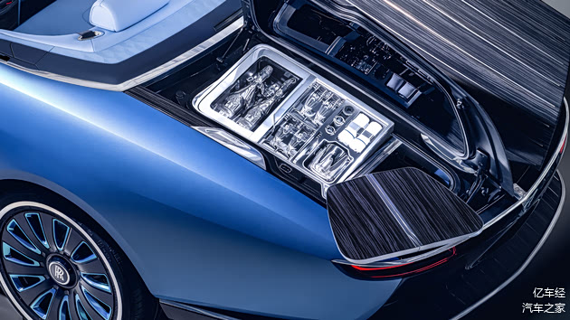 “浮影”尾部的“待客套件”内部装置复杂,需要配置特殊的电子设备。车尾甲板可通过按键操作,其在开启时角度必须为15度,在关闭时使用的上锁系统也必须保证高度安全。同时,“待客套件”内也具备控温功能。因此,劳斯莱斯汽车在历经9个月紧锣密鼓的研发之后,为汽车尾部专门打造了5个电子控制单元,其中还包括全新设计及专用线束。