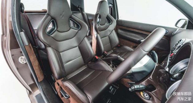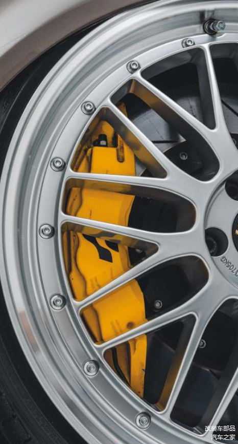 底盘方面,20寸x8.5J ET50 大抛边BBS LM 299 轮毂,搭配225/30R20轮胎,增加胎压监测系统。Rayvern Hydraulics 悬架系统,前加强横杆。前轮8活塞 PB卡钳搭配405mm刹车盘,后轮6活塞 PB卡钳搭配380mm刹车盘,去除ABS泵。