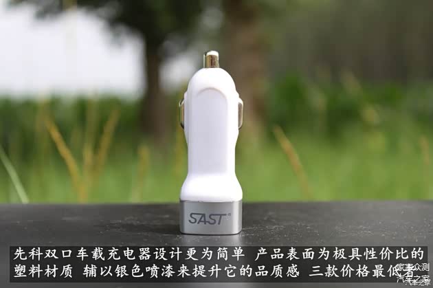 或许是因其价格的缘故,先科车载充电器在三款产品里材质的运用最为廉价,所呈现的结果同样非常明显,各处接缝并不均匀,紧致程度较差