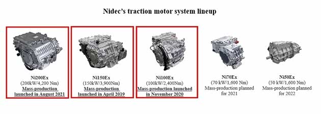 日电产的产品线目前包括三个 E-Axle 型号,另外两个将会很快推出,以提供 50-200 kW 的电机解决方案: