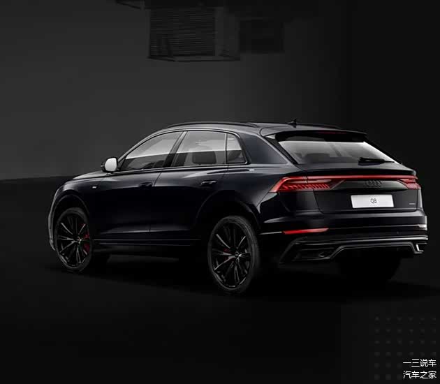 天猫奥迪官方旗舰店上新了一款新的奥迪Q8—暗夜骑士殿堂版车型。该车在格栅、车标、轮圈甚至行李架等处全部采用黑色装饰,形成暗夜风格。其前脸依旧采用家族式八边形进气格栅,配合矩阵式LED大灯。