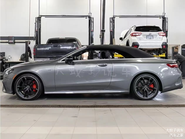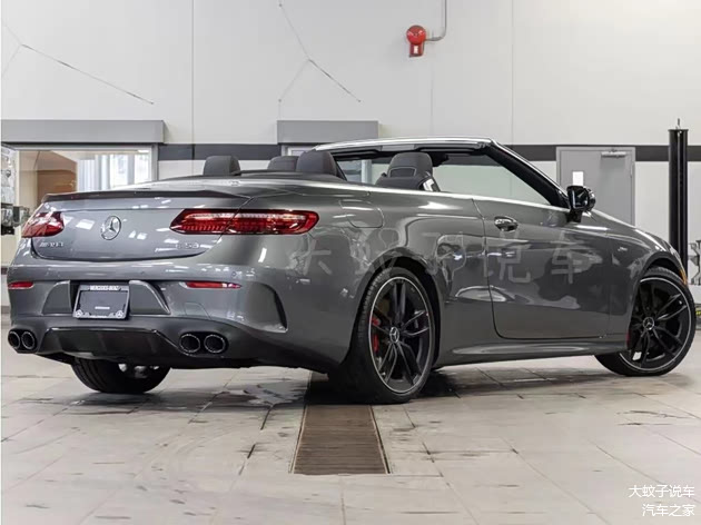 新款奔驰AMG E53敞篷版,海外实车。外观采用了奔驰家族式的设计语言,银色车漆涂装让它看起来非常亮眼,低矮扁平的车头看上去十分运动,冷峻的大灯造型在视觉感受上相当犀利,中网格栅采用竖条状设计,视觉冲击力很强,前包围设计运动,两侧犀利的散热开口动感十足。车身侧面最引人注目的无疑是双门敞篷车身造型,这种设计不仅看着运动同时也很受年轻消费者的青睐,黑化大尺寸轮毂视觉效果颇为夸张,赋予新车较强的运动氛围。尾部呈现出运动化的设计风格,微微翘起的扰流板设计运动,尾灯内部为LED光源,颇有几分科技感,后包围装备有小型尾部扩散器,搭配双边共四出排气布局,运动化风格十分显著。