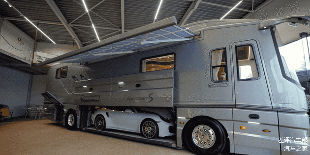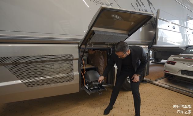 然后接下来,就是这辆房车最骚的一个部分了:中央车库!