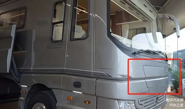 车身另一侧有另外两个外部存储空间,整个房车的水箱也设置在这边。