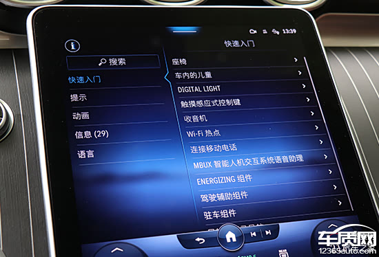 新款奔驰C级搭载的第二代MBUX系统支持车联网以及OTA升级,功能比较完备。实测来看,系统开机速度相当快,1s左右就能进入主界面,几乎可以做到无缝衔接,并且用户还可以自由选择屏幕开启或关闭。此外,该系统在菜单栏的“用户手册”中还设置有快速入门指南,针对各功能都进行了细致讲解,并且还提供了文字及动画演示,非常贴心到位。虽然这套系统功能较多,初次接触会略显复杂,但是经过简单学习后就能快速上手,十分方便。