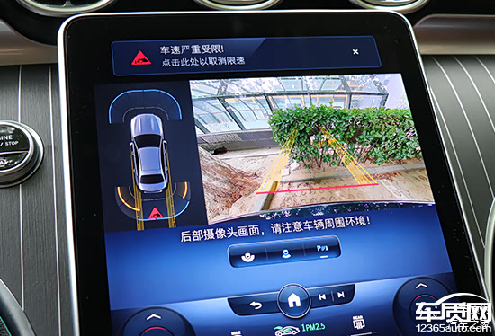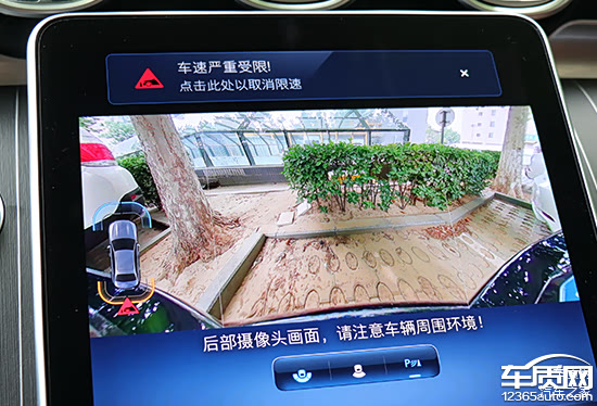 作为一款豪华中型轿车,奔驰C级仅配备了倒车影像功能,确实不免显得有些寒酸。倒车影像画面显示清晰度尚可,并配有可随动的倒车辅助线,便于驾驶者判断泊车轨迹。后置摄像头支持常规以及广角两种显示角度,畸变情况被控制得比较不错,观感尚佳,配合前/后驻车雷达,实用性方面确实没什么槽点。