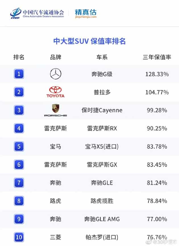 最近,中国汽车流通协会公布了今年上半年中国汽车的保值率报告和具体车型保值率排名。其中在中大型SUV市场中,出现了全场最高的保值率,甚至比原车价都要高,究竟是怎么回事?接下来就一起来看看。
