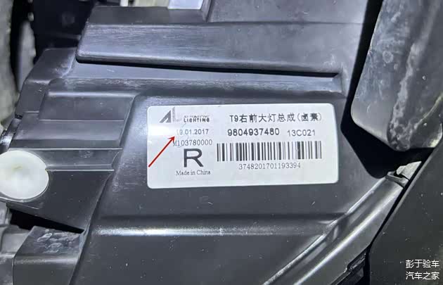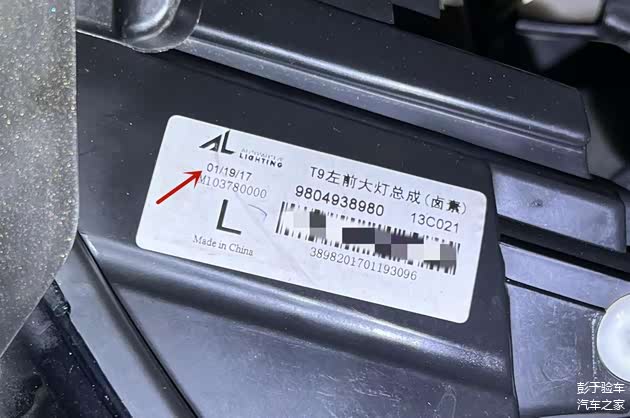 左前大灯固定螺丝没有拧动,出厂日期为17年1月19日,和车辆的出厂日期一致。