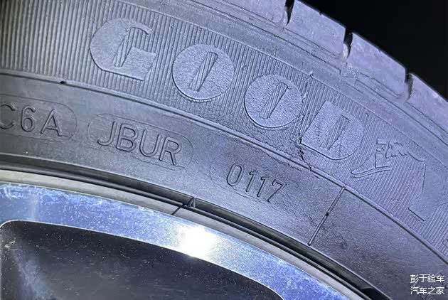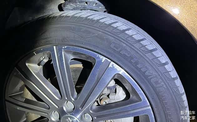 原厂胎,有磨损,左后轮胎外胎壁有划伤。