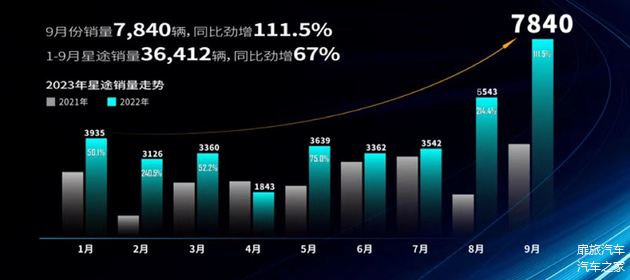 数据显示,今年9月星途汽车销量7840辆,同比增长111.5%;1-9月,累计销量达36,412辆,同比劲增67%,实现了品牌的快速发展,成为首个海外销量超过国内销量的自主汽车品牌。