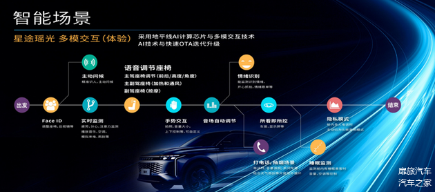 为了让用户趣享生活,瑶光打造了智能场景,实现多模交互,贯穿用车全场景。如支持情绪识别功能,可通过情绪主动推送相关歌单。同时它还具备四音区技术,全车位置均能实现精准语音操控,即便在高速或嘈杂环境下,后排乘客也能实现语音的精准识别。