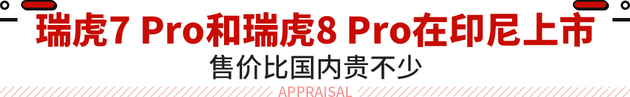 Tiggo 8在印尼市场供推出两款车型,且均为7座布局,与Tiggo 7 Pro形成互补,当地售价折合人民币约23.4-24.8万元。作为对比,瑞虎8 Pro在国内市场售价区间为12.69-17.19万元。