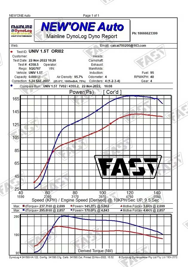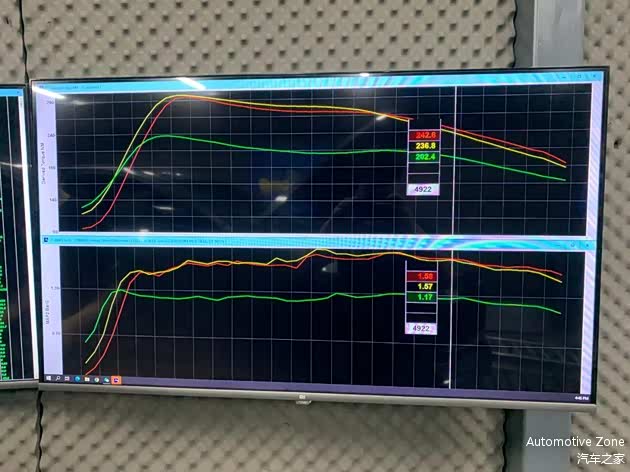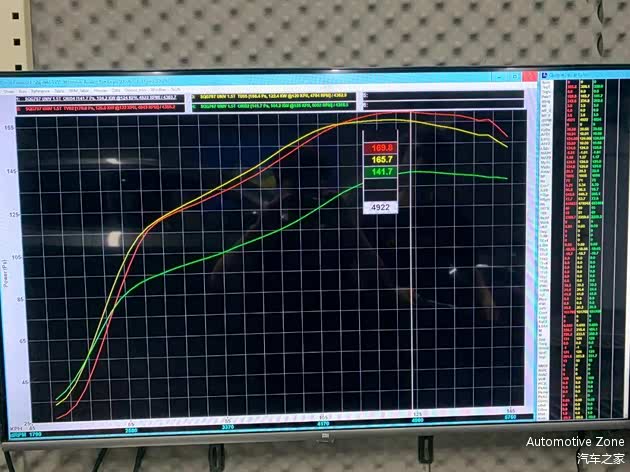 我们一样使用mainline(伤心马力机)进行测试,一样的使用FAST外挂电脑进行一阶的测评,虽然univ是7档湿式双利(青山DF733)匹配了手动模式,但是在功率测试的时候,需要拔掉轮速传感器,才能锁住档位进行测试,这也是我们测试众多国产的1.5T车型独一份的操作。