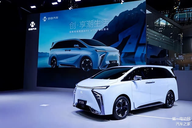 合创旗下首款MPV车型V09在2022年广州车展正式亮相,新车定位为中大型纯电动MPV,基于合创自研的 H-GEA 纯电架构打造,搭载两颗高通 8155 芯片,支持 H-VIP3.0 智驾互联系统;全车装配 24 个传感器,高配车型将会配备激光雷达。