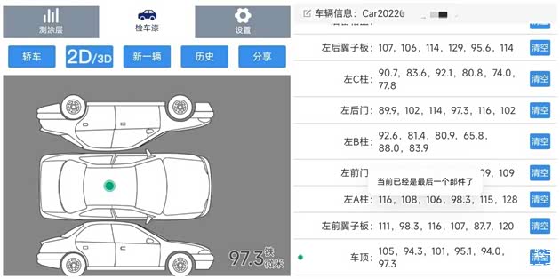 这个事全车覆盖件漆面数值的打点统计,全车都是原车漆,包括前后保险杠。