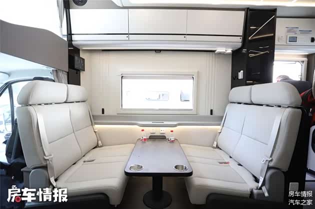 车内配有新风换气系统,驻车安防六路监控,5kw伟巴斯特驻车加热器。单拓展的加持,格局看起来更加舒展,客厅双人对坐卡座沙发,旁边配有五孔插座,电动升降桌,餐桌降下可拼床,左侧单排沙发,坐垫拉出也可以拼床使用,所以整车一共三张床,可供6人睡卧需求。客厅区域配备投影仪和投影幕布,停下车的时候,这里就可以形成小型家庭影院了,和心爱的人看场电影真是美美的享受。