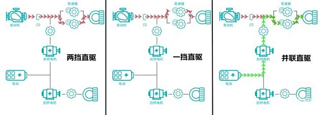 在高速巡航的时候多出一种前驱模式,由发动机决定是否绕过增程发电(后驱),如果用前置发动机在定速巡航状态下驱动最省油,那系统就会切换到前驱模式。