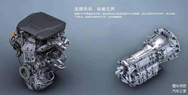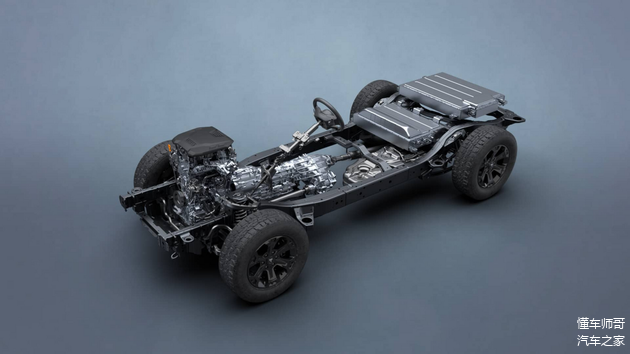 传动部分是在原本9AT变速箱的基础之上进行了升级,适应电机与发动机共同输出动力的需求。采用多挡位变速箱,相对于单档位变速箱最大的优势在于可以承受更强的扭矩,适应高强度越野工况,并且有利于降低能耗。