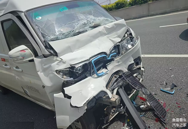 转向另一个方向,这答案就来了,是一台东风微面,实际上追尾的一方自己也撞的够呛,短促的鼻头内没有发动机,导致机舱基本是摆设了,直接就被撞的全部溃缩,注意看副驾驶一侧车顶部分,已经凹陷出现褶皱区域,可以感受到当时的撞击力度有多大了吧?车顶都给撞变形了。