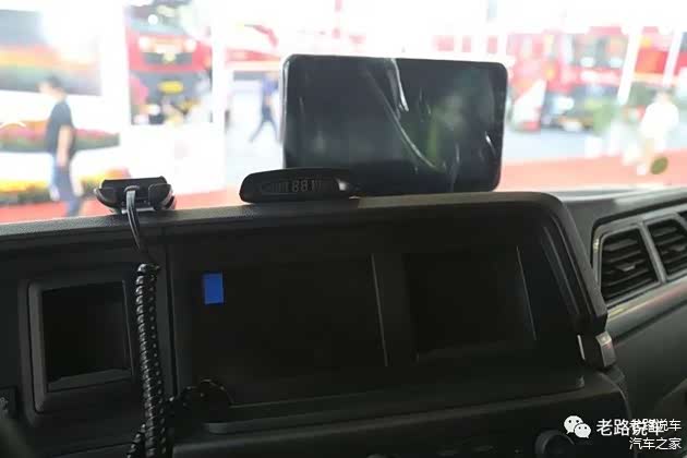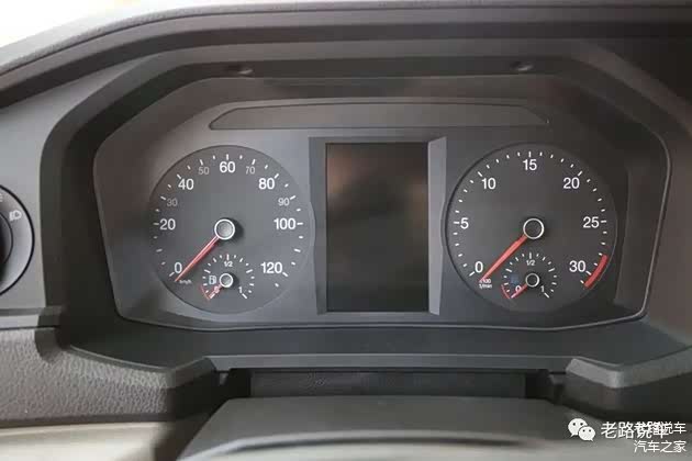 左侧是车速表和油表,右侧是转速表和尿素表,中间是液晶显示屏。