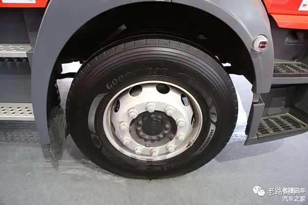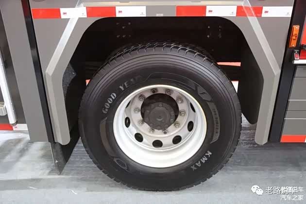 前桥,全车使用固特异KMAX D 295/80R22.5型轮胎。