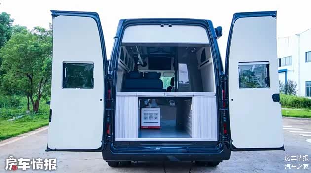 车尾门采用对开式设计,打开就能看到后方的睡卧区,床铺下方是可以作为行李舱来使用的,一些大件行李可以储存在这里。
