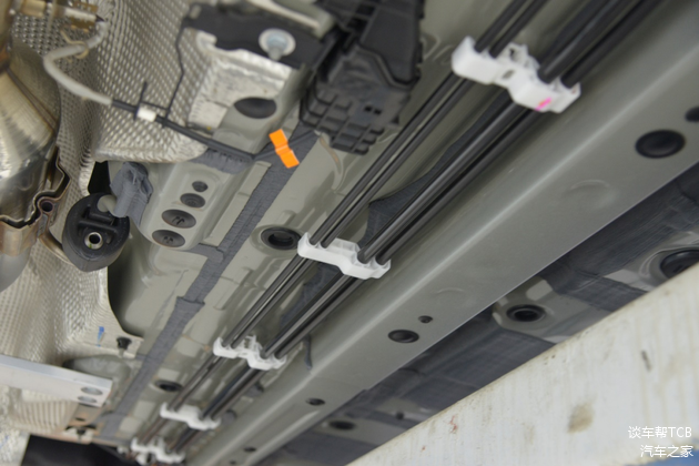 另外在底盘的细节方面,全新第三代逍客的底盘管线有护板进行保护,在让底盘更加规整的同时,也有效防止了路面杂物对于底盘管线的冲击。