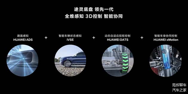 途灵底盘还通过HUAWEI ADS智能路面感知、iVSE智能车辆状态感知、全新HUAWEI DATS动态自适应扭矩系统和HUAWEI xMotion智能车身协同控制系统,四大技术全维感知,3D控制智能协同,以智慧驾驭征途。在快速过弯、加速、制动时,悬架控制器将预判驾驶员意图,变大阻尼使底盘变硬,抑制车身侧倾、俯仰,保持操控稳定。此外,动态扭矩自适应系统还将改善路面打滑,自适应调节扭矩,提升动态安全性。