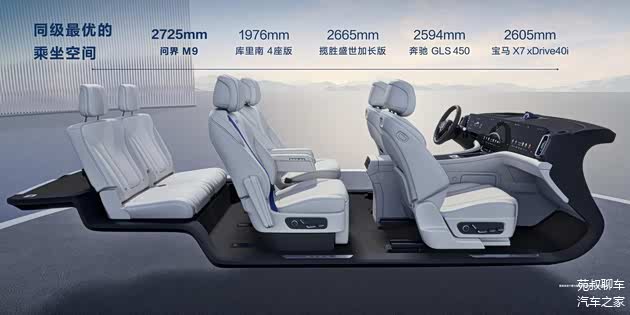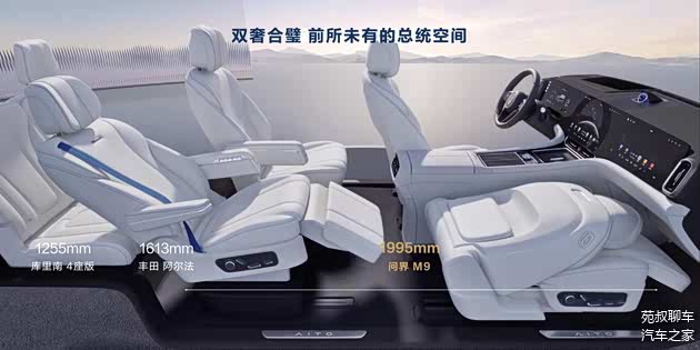 空间方面,问界M9使用了6座布局,配有女王副驾座椅,支持14向电动调节、8点按摩、电动腿托、脚托、通风加热和座椅记忆功能,第二排使用的是零重力座椅,14向电动调节、10点按摩、通风加热功能都配备,并且支持双121°零压角,乘坐起来很舒适。同时前排副驾还支持放平,此时第二排座椅与放平后的副驾座椅形成了一个超大空间。