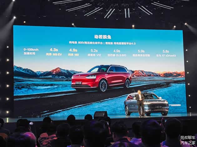 问界M9 EV使用了800V高压碳化硅平台,充电5分钟增加续航150km,实现了CLTC纯电续航630km的续航里程,电池容量为100kWh,前后双电机布局,前电动机功率为160kW、扭矩为277N·m;后电动机功率为230kW、扭矩为396N·m。官方0-100km/h加速时间为4.3s。