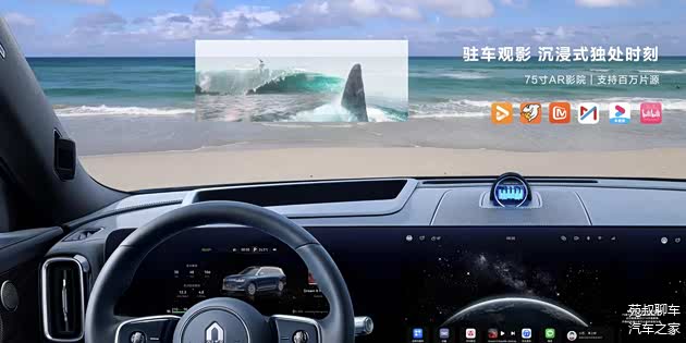 倒车影像也能显示在这个临境抬头显示系统之中,驻车时临境抬头显示系统可变身为75英寸AR影院,你开问界M9,车外可投屏观影、车内二排可舒适投屏观影、坐在主驾驶座椅上等待时还能通过HUD观影,我想中国影视业要努力了,不然他们更新的速度快赶不上你看完他们的速度了。