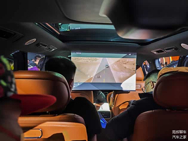 如果说车外灯光投影功能是黑科技的话,那车内这块32英寸车规级投影则属于情理之中,意料之外,确实之前没想到过车内还能配备一个投影仪,通过第三排上方的激光投影仪和第二排座椅上方的超大投影幕布,配合上舒适的第二排座椅,可以观影、可以玩儿游戏、可以开电话会议、可以炒股,可以干很多事情,问界M9的这块投影不光能成为男人的港湾,也能成为全家人的乐园。