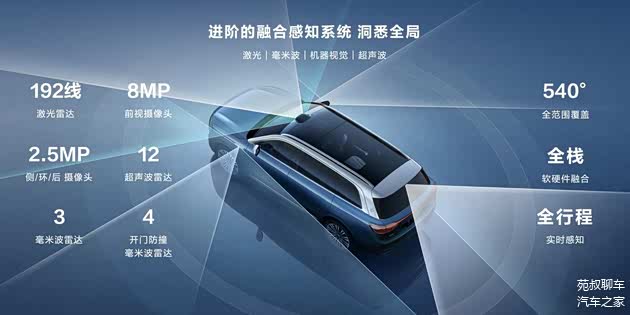 在智能驾驶方面,问界M9整车配备了27个传感器,激光雷达为全新设计的192线激光雷达,是现在车规级量产最高线数激光雷达,最远探测距离为250m,成像能力为184万点/秒,雷达扫描频率为20Hz。