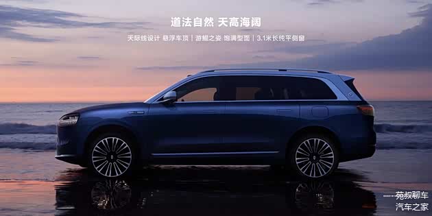 问界M9在内外设计上延续了华为“极致、纯净、简约”的美学原则,外观方面,问界M9使用了全新的家族化设计语言,其以鲲鹏精神为内核,整个外观设计颇具体量感和气势,同时还实现了0.264Cd(EV车型)的风阻系数,和同级车型相比颇有优势。